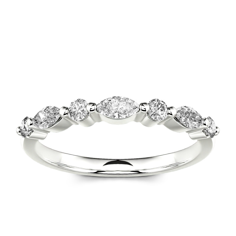 Jeulia ラウンドカット&マルキーズカット シンプル 重ね付け ゴールド 10K 14K 18K プラチナ リング