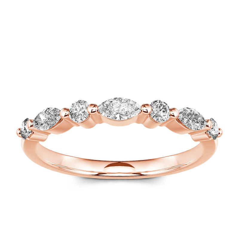 Jeulia ラウンドカット&マルキーズカット シンプル 重ね付け ゴールド 10K 14K 18K プラチナ リング