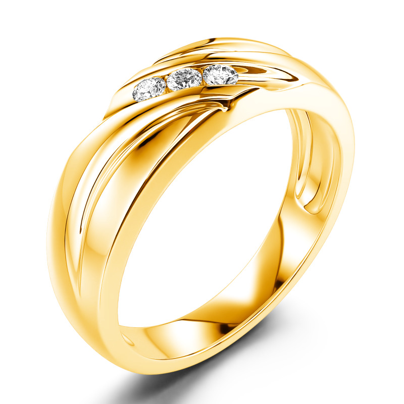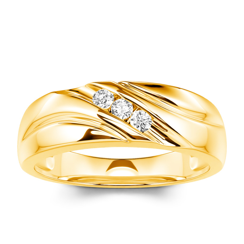 Jeulia スリーストーン ラウンドカット 10K 14K 18K プラチナ メンズ リング