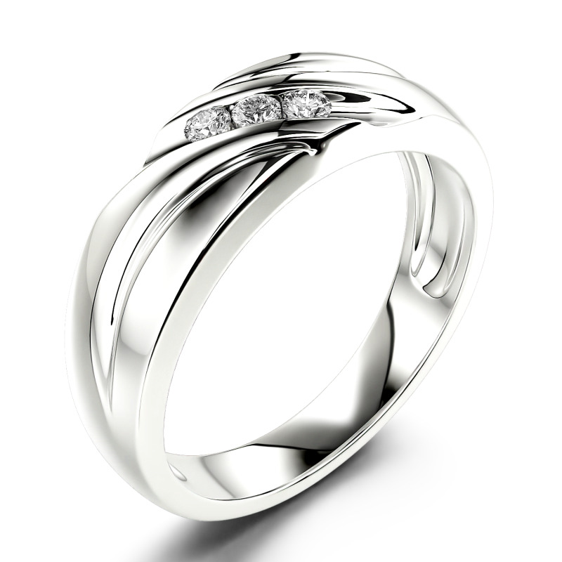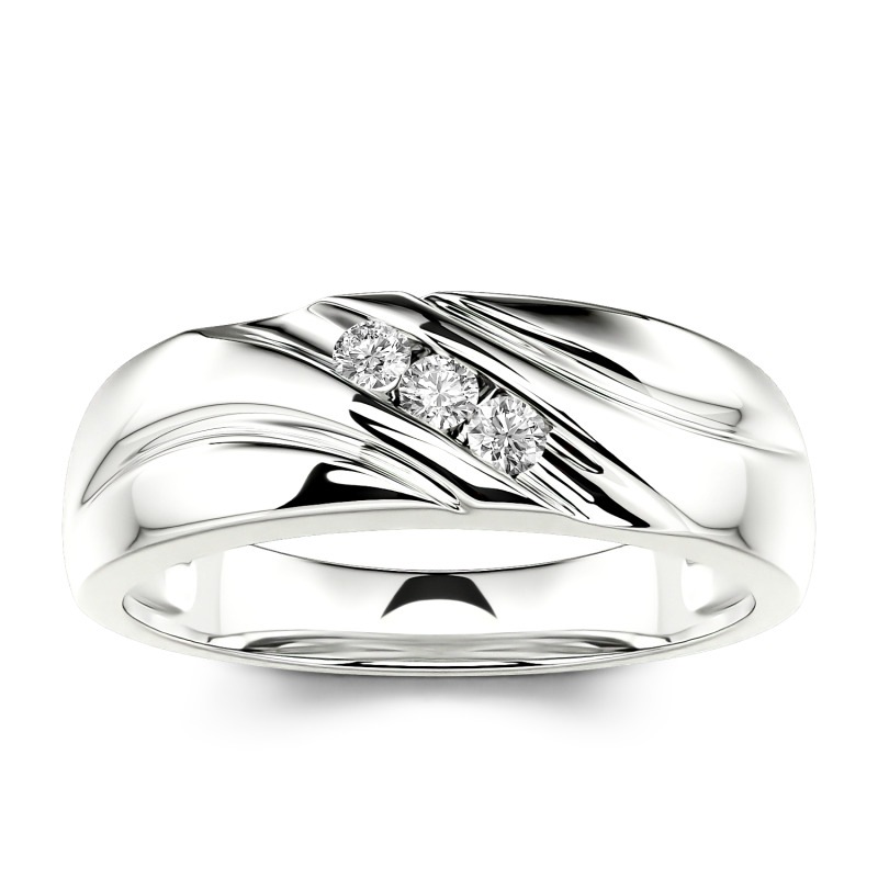 Jeulia スリーストーン ラウンドカット 10K 14K 18K プラチナ メンズ リング