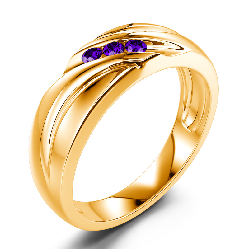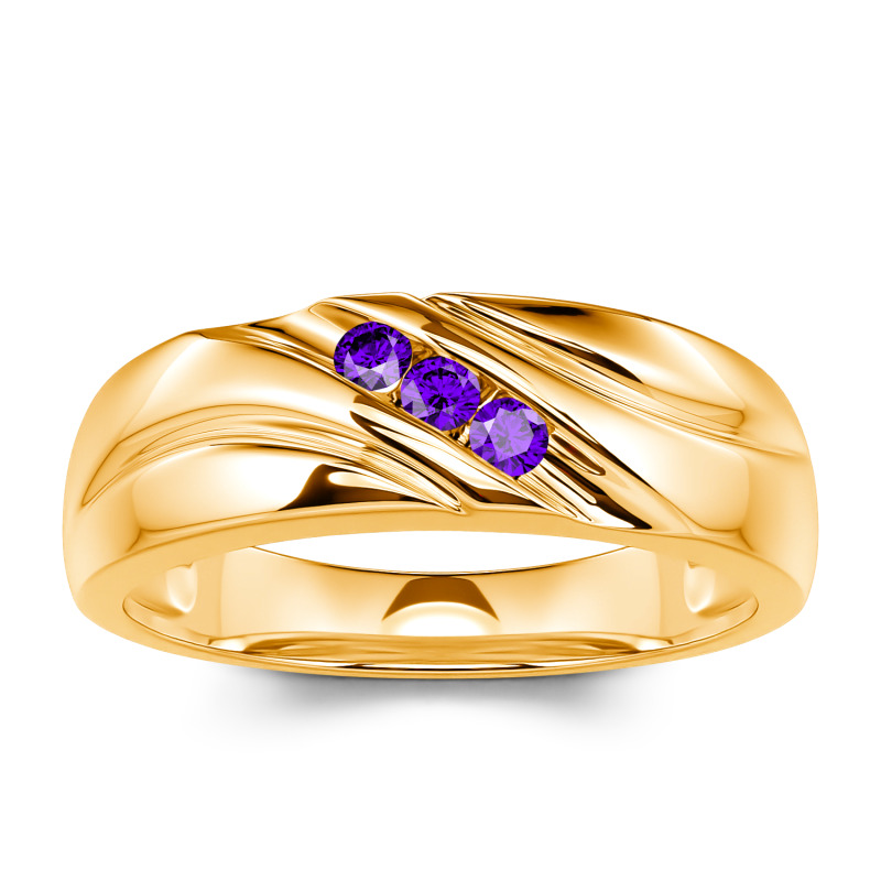 Jeulia スリーストーン ラウンドカット シルバー メンズ リング