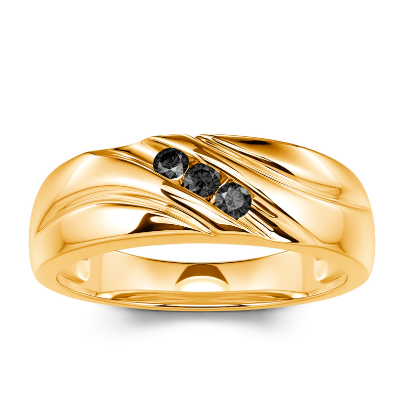 Jeulia スリーストーン ラウンドカット シルバー メンズ リング