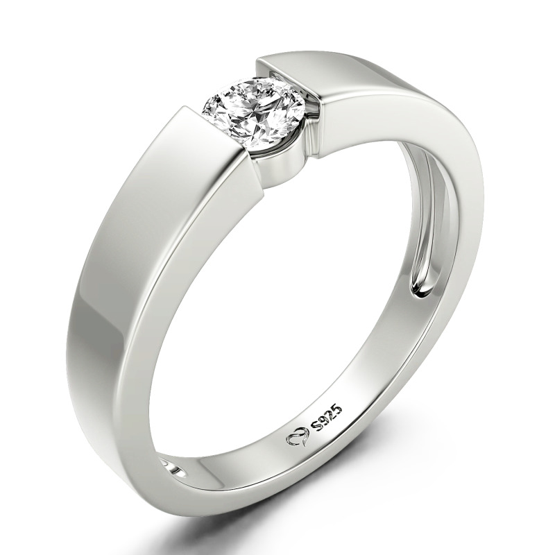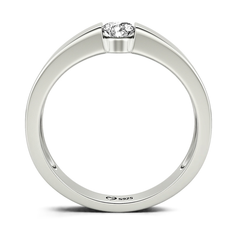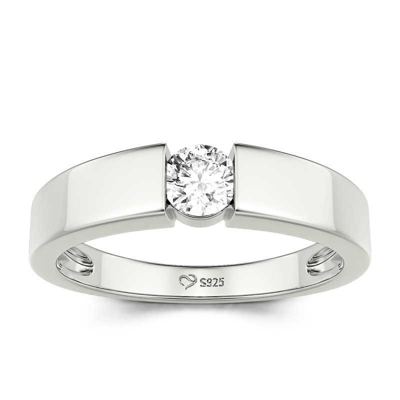 Jeulia シンプル ラウンドカット メンズ エンゲージリング スターリングシルバー