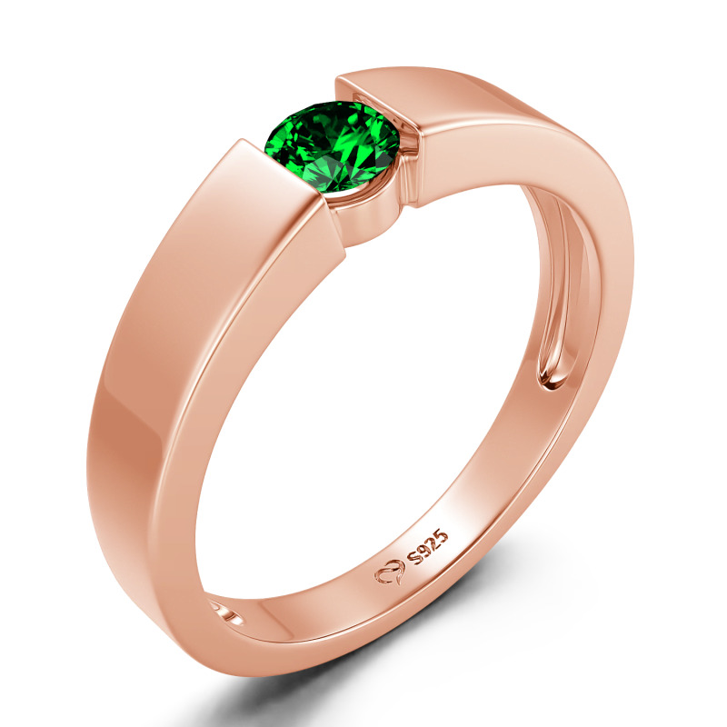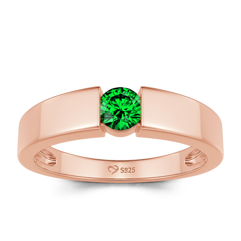 Jeulia シンプル ラウンドカット メンズ エンゲージリング スターリングシルバー