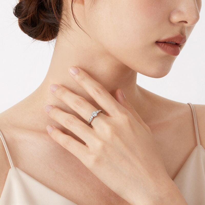 Jeulia シンプルな 3 石プロミス リング ミルグレイン ラウンド カット スターリング シルバー