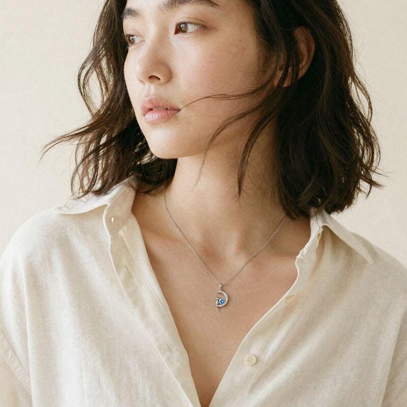 Jeulia 誕生石付きキャット&ハート・ムーン・ネックレス