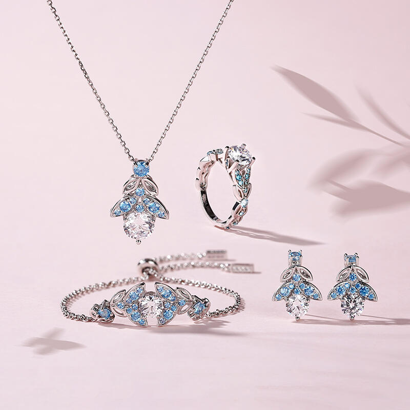 Jeulia バタフライ ラウンドカット シルバー ジュエリー セット
