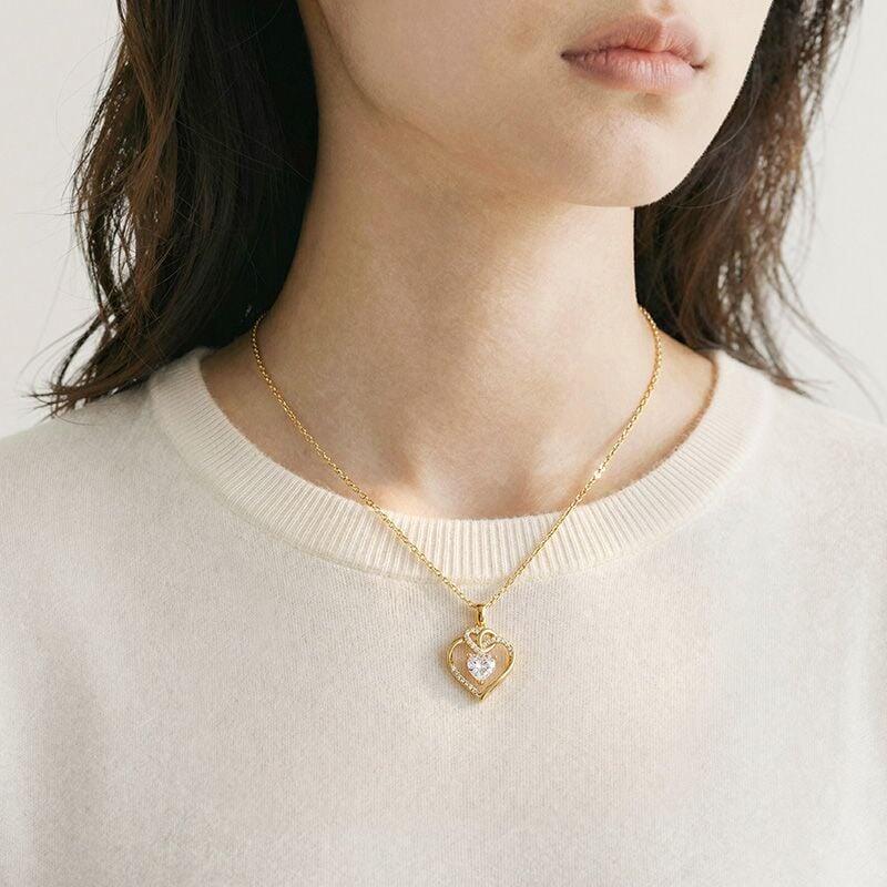 Jeuliaカスタムクラシックツイストハートネックレスは、パヴェセットの白色ジルコンがきらめく金色のハートフレームが特徴で、捉えられたため息のように浮かぶ中央のハート形のクリアジェムを抱えています。チェーンは気取らない優雅さで垂れ、そのリンクはフレームの繊細な曲線を呼应します。金属の温もりや石の色合い—霜のようなシルバーからローズゴールドの夜明けまで—をカスタマイズして、あなたの愛の独特な言語を映し出してください。