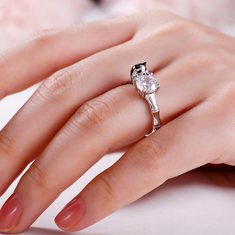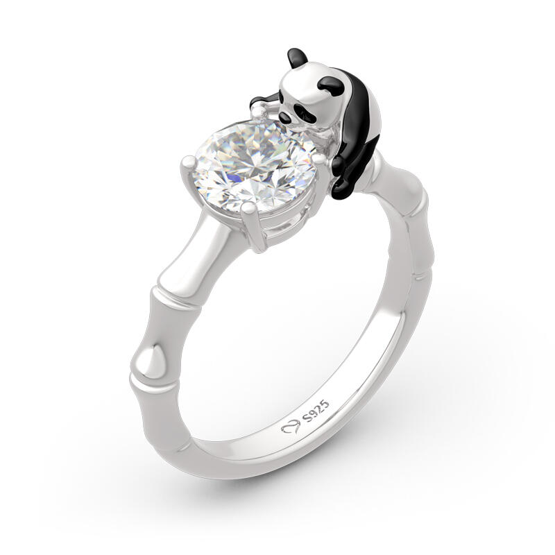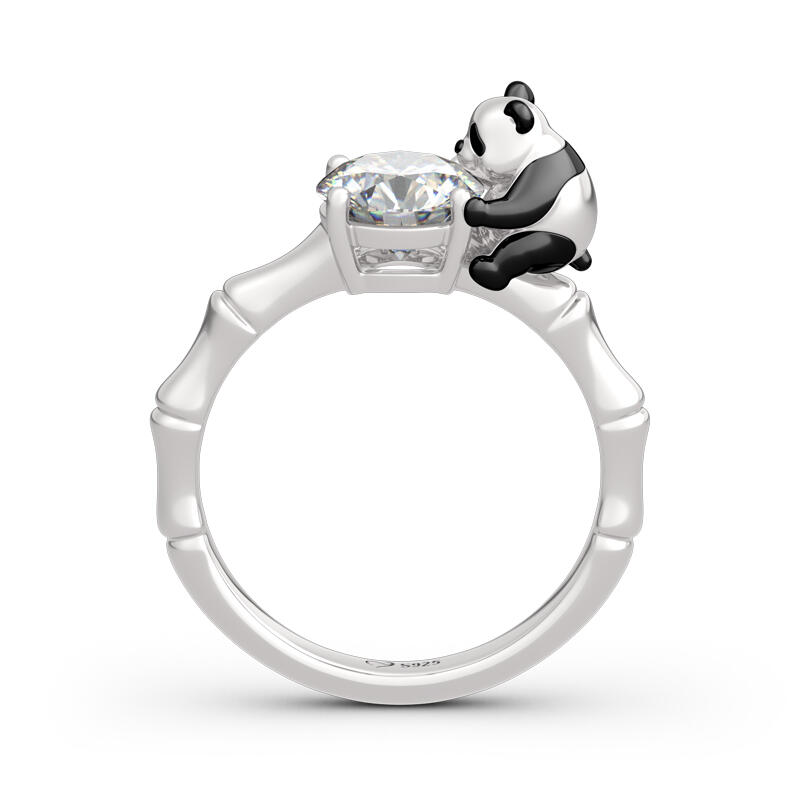 Jeulia Hug Me キュート パンダ 竹 ラウンドカット シルバー リング