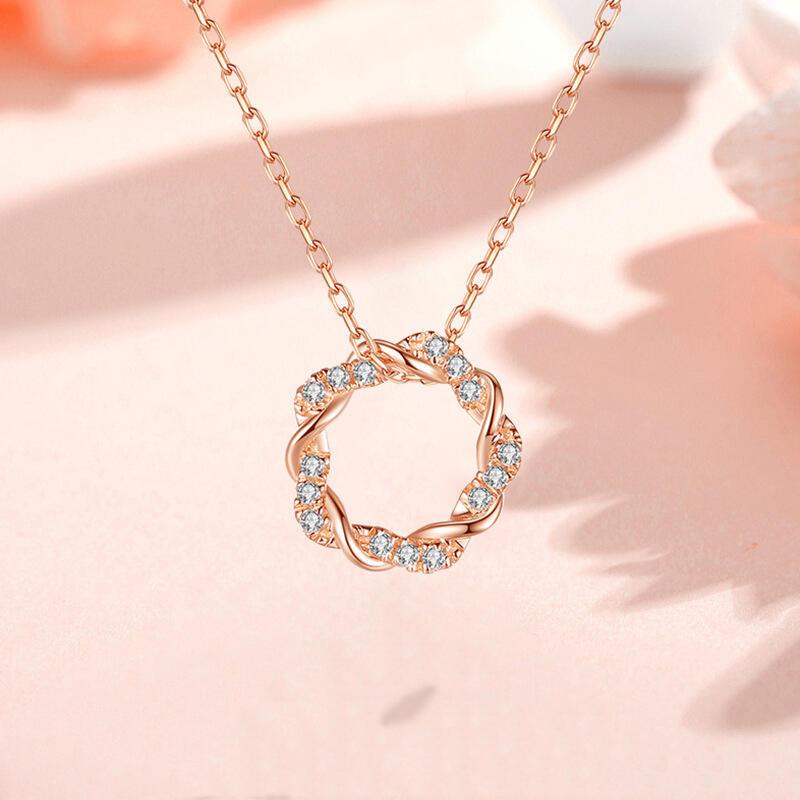 Jeulia シンプル ツイスト サークル 円型 シルバー ネックレス